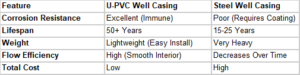 The “total cost of ownership” is much lower with U-PVC well casing.